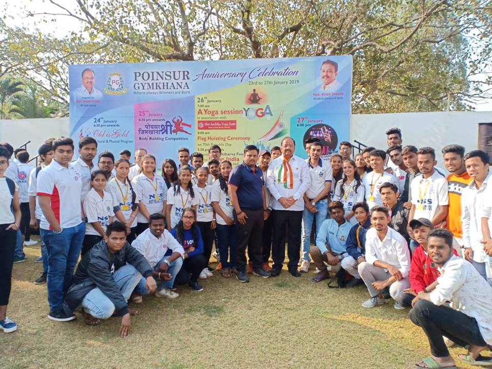 26th January Republic Day program at Poinsur Gymkhana Prakash College students Sports and NSS volunteer with Chief Guest Shri Gopal Shetty (Member of Parliament) and others
